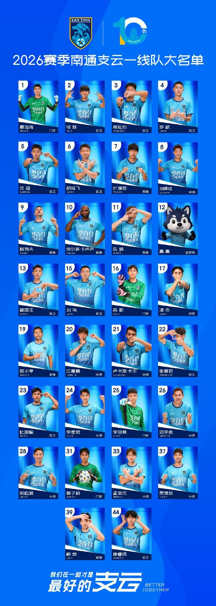 北京时间3月11日,中甲俱乐部南通支云公布了2026赛季一线队的大名单,